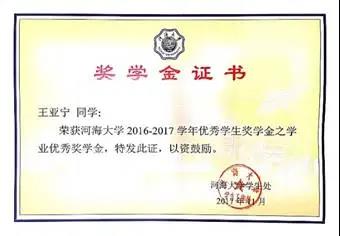 1.河海大学2016-2017学年优秀学生奖学金之“学业优秀”奖学金