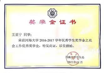 2.河海大学2016-2017学年优秀学生奖学金之“社会工作优秀”奖学金