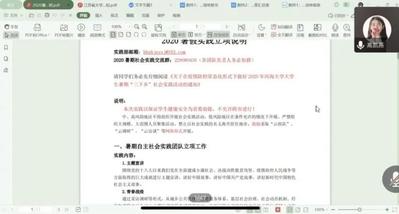 为解决同学们在暑期实践开展前遇到的问题,直播平台 实践部在7月9日上午开展了2020暑期社会实践暨千乡万村经验分享会。出席本次活动的嘉宾有直播平台 团委书记曾莉老师、团委实践部副部长高凯燕以及各主题活动的代表宣讲人。