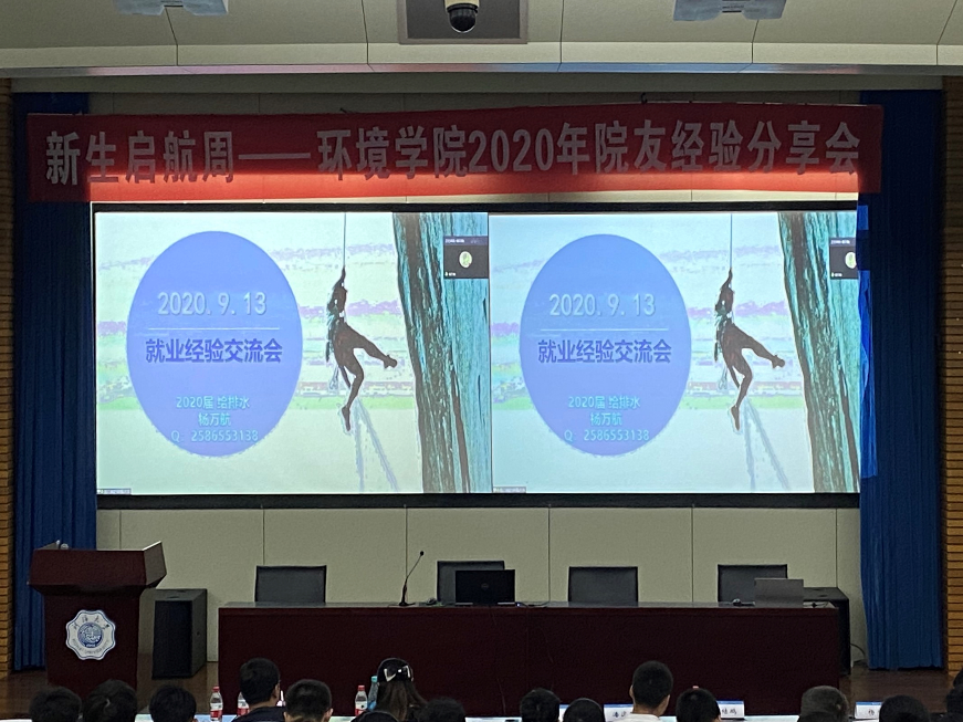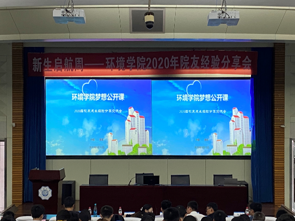 9月13日下午2:00,直播平台 梦想公开课——2020届校友成长经验交流分享会在江宁会议中心成功举办。20级辅导员及全体新生参加本次活动。活动共邀请了8位环境院20届优秀毕业生,面向20级新生以线上线下两种形式分享了自己的成长经历,他们或取得保研资格,或成功考研,或出国出境深造,或参加工作。本次活动由计思怡同学主持,旨在借优秀院友们的成长经历使同学们加深对大学生涯的了解,在本科阶段树立明确的目标。