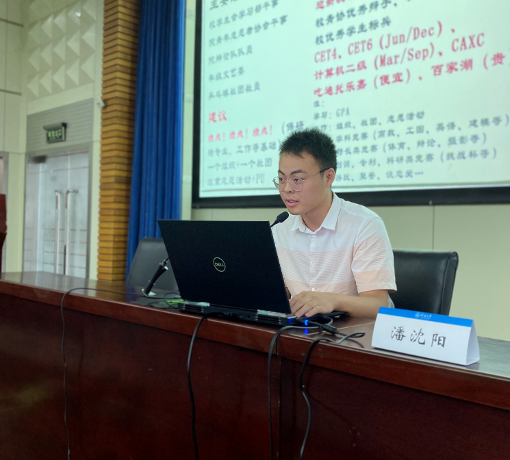 活动首先由16级环工专业潘沈阳做经验分享。潘沈阳成绩优异,综合排名位列全专业第三,获得了优秀毕业生,魅力毕业生等荣誉称号,获得直博资格,在河海大学直播平台 攻读博士学位。潘沈阳分别以大学4个学年为维度,给同学们提出了建议:他建议同学们在大一重视学习成绩,适当参加学生组织;在大二努力参加竞赛,适当接触科研;在大三确定毕业后的方向,提前了解保研信息。此外,潘沈阳还向同学们介绍了大学四年需要重点注意的课程与资格考试。