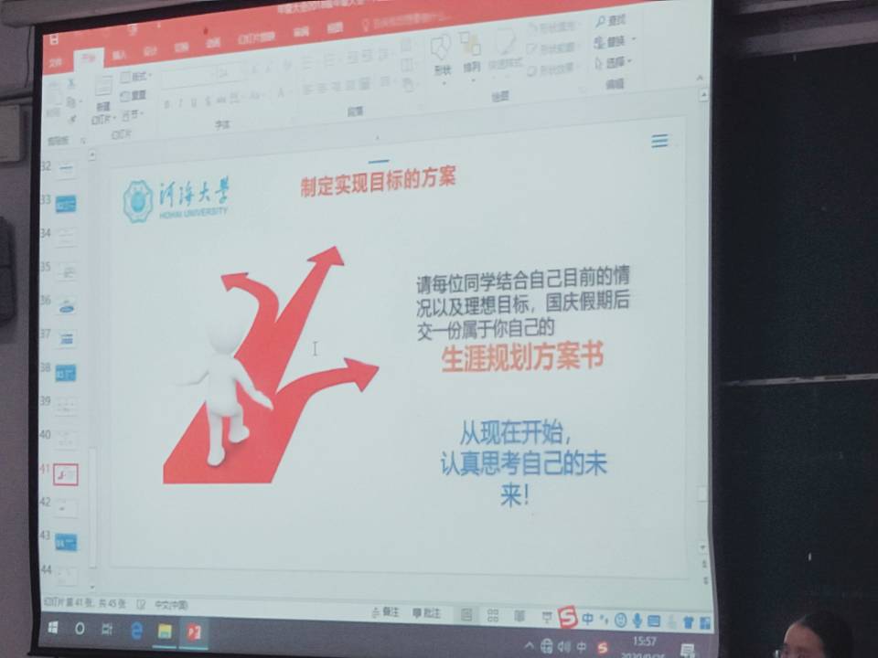 接着,曾莉老师向同学们分析了最近几年毕业生去向和第二课堂达标情况以及向同学们讲述有关职业生涯规划的问题。