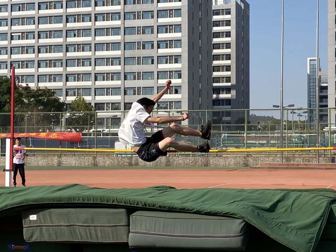 于此同时,在另一个场地中进行的女子跳远比赛中,詹玥同学、龚怡宁同学、韩清云同学也不甘示弱。她们身轻如燕,纵深一跃,便在天空中留下一道美丽的弧线。最终,詹玥同学和韩清云同学分别获得了全校第三和全校第五的好成绩。