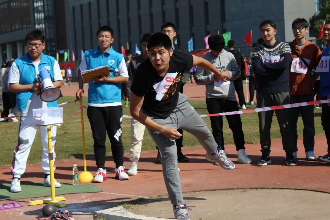 男子铅球决赛中,环境院运动员窦溱瑀同学、万凯琦同学、徐启晨同学为直播平台 争光。伴着高挥的臂膀,铅球从手中划出圆滑的曲线,在草地上砸出了扎实的坑洼。其中窦溱瑀同学凭借高超的投掷本领荣获了第三名的好成绩。