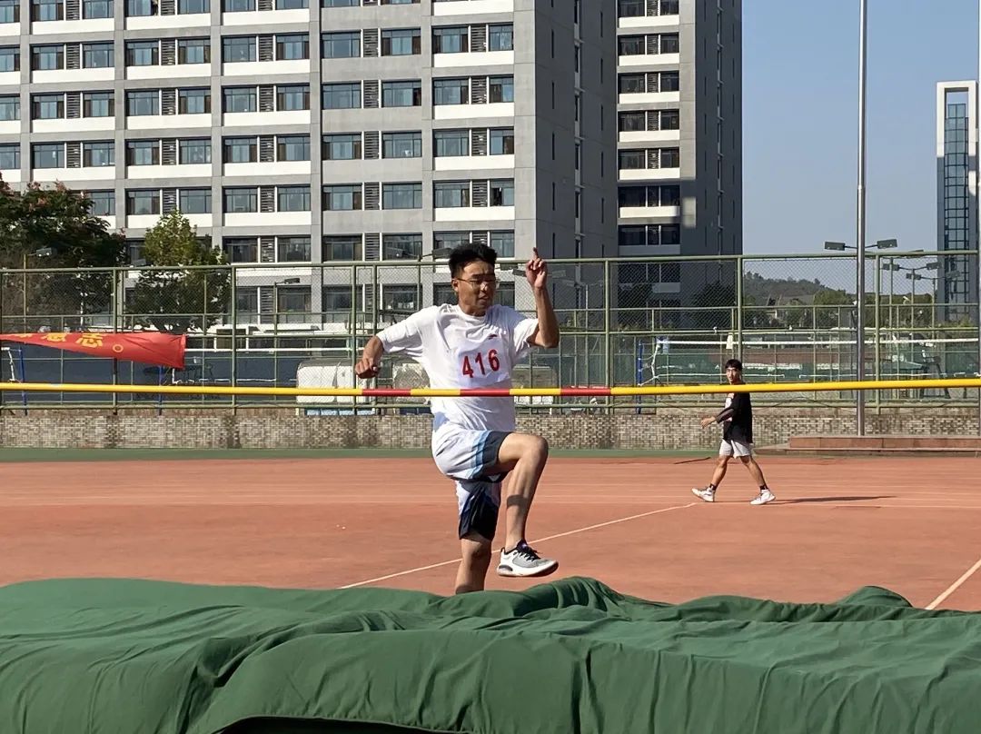 在同学们的欢呼声中,横竿又上升了一个新的高度。但在男子跳高比赛中,姚利锦同学、哈尼奇同学、倪晨栋同学作为环境院学子,不畏惧困难,敢于挑战,敢于攀登,一次次超越自己。比赛最后,他们均取得了不错的成绩。