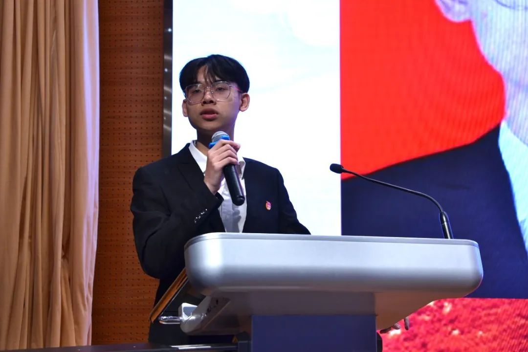 主持人宣布会议开始。会议第一项议程,参会人员全体起立,奏唱《中华人民共和国国歌》。随后,校团委副书记朱乔、院党委副书记戴玉珍相继致辞。