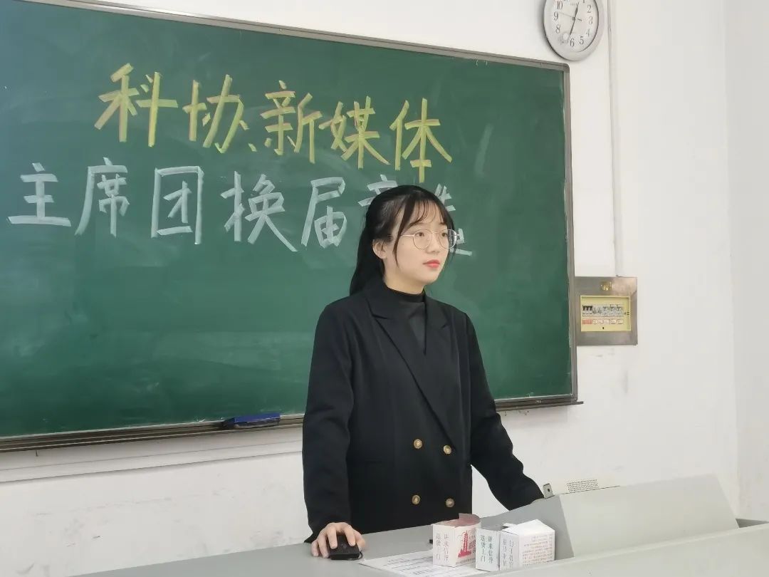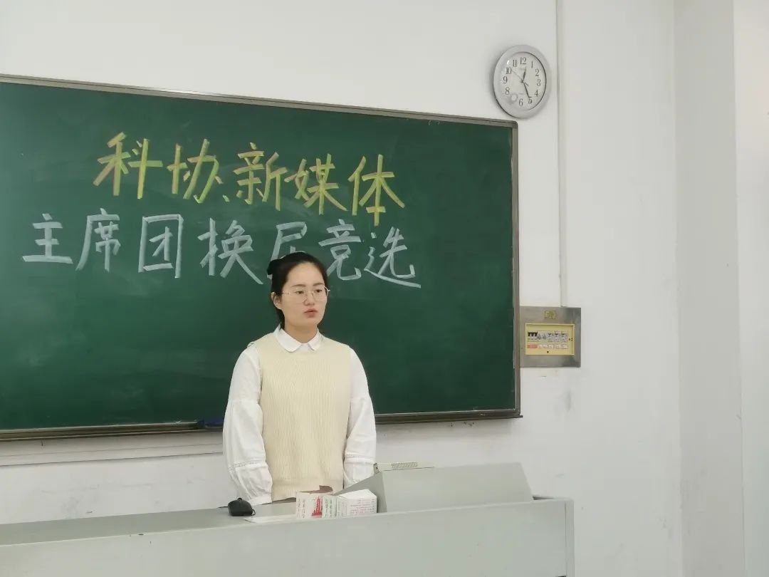 本次竞选共有七位候选人参加。首先进行的是科协的换届竞选。竞选主席的是2018级刘哲炘同学,竞选副主席的是2019级钟尹婕同学和2019级钱昊亮同学。各位竞选人就个人介绍、学生工作经历与成果以及未来展望与策划三个方面进行了PPT展示与个人演说。