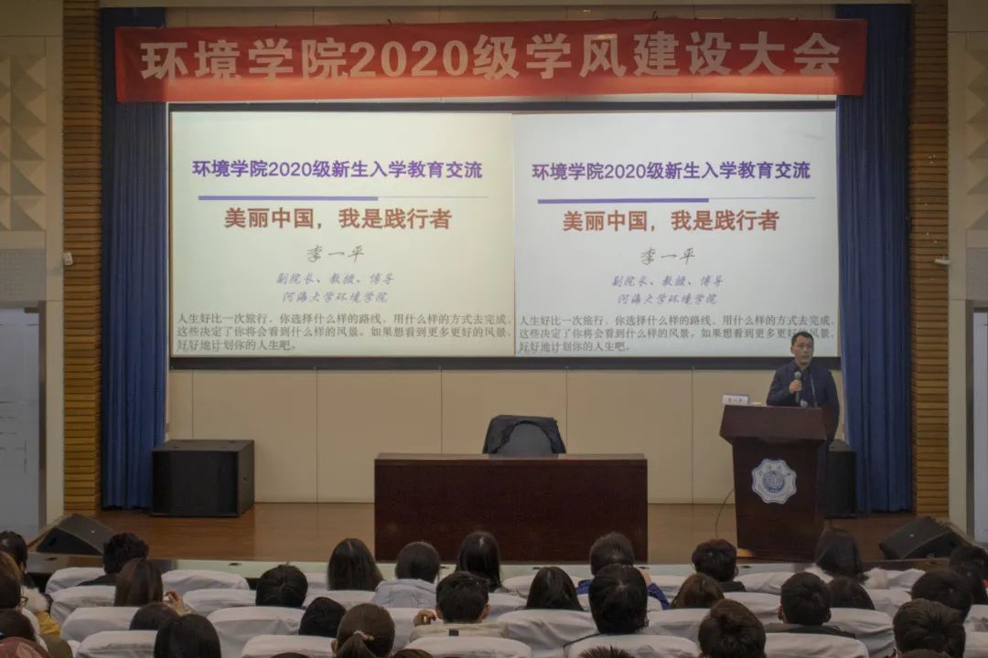 1月4日,直播平台 2020级学风建设大会在江宁会议中心举行。直播平台 副院长李一平教授在2021年第一个工作日,与2020级全体本科生欢聚一堂,进行亲切的交流,作《美丽中国,我是践行者》的主题报告。2020级辅导员杨铮主持会议。